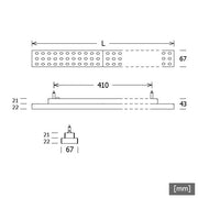 Abmessungen (LxBxH): 867 x 67 x 43 mm