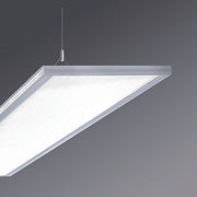 Extrem flaches von BUSSE Design+Engineering GmbH gestaltetes Leuchtengehäuse, Aluminiumstrangpressprofil natur eloxiert, sichtbare Bauhöhe 23mm, abgerundete Stirnseiten Aluminium natur eloxiert, hohe Stabilität durch Querverstrebungen aus Edelstahl, Lichtverteilung direkt/indirekt strahlend mittels Diffusor micro-prismatisch aus PMMA, Indirektanteil und längsseitig strukturiert leuchtende Seitenflächen über Abdeckung aus satinierter Polycarbonatfolie als Staubschutz, hohes Lichtstrompaket mit Direkt- und Indirektanteil im Lichtstromverhältnis 2:1, Lichtfarbe warmweiss (927) bis tageslichtweiss (965) im Direkt- und Indirektanteil mit sehr guter Farbkonsistenz und hoher Farbwiedergabe Ra > 90. Geeignet für Bildschirmarbeitsplätze, rundumentblendet 65° < 3000 cd/qm nach aktueller Norm DIN-EN 12464-1. Zwei DALI LED Treiber Device Type 8 (DT8) integriert, Direkt- und Indirektanteil getrennt über DALI-Protokoll dimmbar. Elektrischer Anschluss über integrierte transparente Anschlussleitung 5x0,75mm², Länge 1900mm, Leitungsenden abgemantelt.