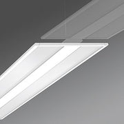 Besonders flach gestaltetes Leuchtengehäuse, Aluminiumstrangpressprofil lackiert, sichtbare Bauhöhe 10/24mm, vorbereitet für Lichtbandmontage, Lichtverteilung direkt/indirekt strahlend mittels Diffusor micro-prismatisch aus PMMA, Langzeit UV-beständig, homogener Lichtsaustritt durch seitliche LED-Lichteinkopplung in hocheffektiver Light Guide Scheibe und semi diffusen weißen Reflektionsschichten, mit spezieller Präzionstechnik für eine definierte Deckenaufhellung. Geeignet für Bildschirmarbeitsplätze, rundumentblendet 65° < 3000 cd/qm nach aktueller Norm DIN-EN 12464-1. Elektrischer Anschluss über Anfangsleuchte mit 3-polige Anschlussleitung und Lichtbandleuchten mit Durchgangsverdrahtung.