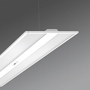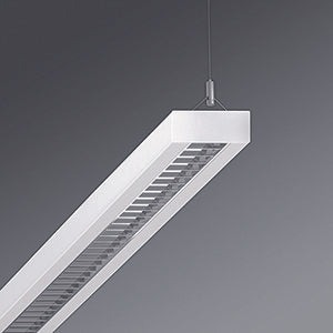 RegioluxGehäuse aus Stahlblech im grazilen Rechteckdesign, Stirnseiten Aludruckguss schwarz, Lichtverteilung direkt/indirekt strahlend mittels Micro-Einzel...
