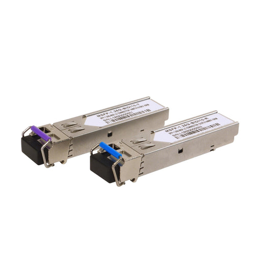 TelevesKit bestehend aus 2/bidirektionalen SFP (Small Form-Factor Pluggable) Transceiver-Modulen 1000 Base-X mit LC-Stecker, mit denen das Netzwerk auf bi...