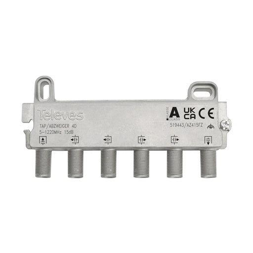 TelevesAbzweiger 4-fach für Kabelfernsehen nach DOCSIS 3.1 Standard. 5-1220MHz AD: 15dB Technische Details Anschlussart F-Connector Ausführung Abzweige...