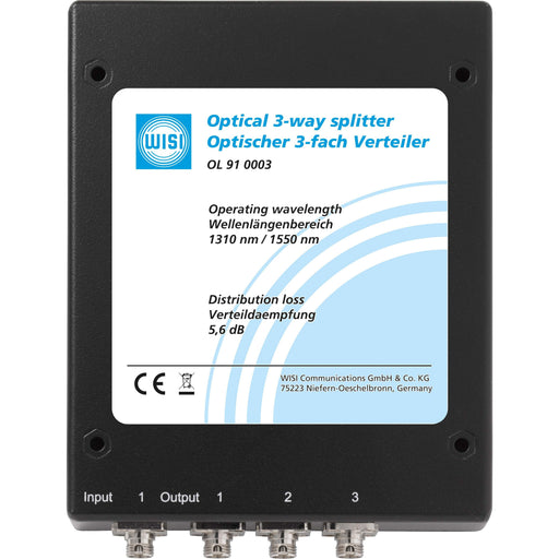 WisiOptischer symmetrischer 3-fach Verteiler, FC/PC Anschluss, passend fuer OL95 xxxx Glasfaserkabel Technische Details Anzahl der Fasern 3 Mit Hohl...