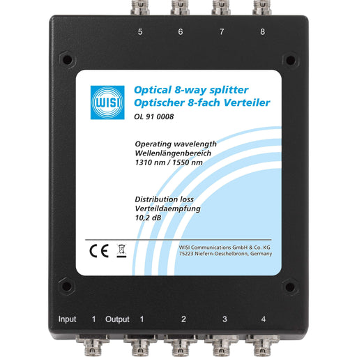 WisiOptischer symmetrischer 8-fach Verteiler, FC/PC Anschluss, passend fuer OL95 xxxx Glasfaserkabel Technische Details Anzahl der Fasern 8 Mit Hohl...