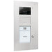 Single-chip CMOS, diagonaler Erfassungswinkel: 130 Grad, Auflösung, maximal (Pixel x Pixel): PAL: 648 H x 488 V, Auflösung: 380 H TVL Color, Objektiv 2,0 mm , F=2,5, Lichtempfindlichkeit: 1,0 lx (F 1,2), Videoausgangssignal: (differenziell, koaxial) 1,1 Vp-p, Geräteeigenschaften, Video-Außenstation, Anzahl Klingeltasten: 1, Montageform: Unterputzmontage, Gehäuseform: Frontplatte mit Unterputzkasten, Material Gehäuse: Aluminium, Farbe Gehäuse: eloxiert natur, Material Klingeltasten: Metall mit wartungsfreien , Kontakten, bruchsicheres Namenschildglas, energiesparende LED-Namensschildbeleuchtung, Öffnungsprinzip: win:clip, Lautstärke Sprachausgabe: einstellbar, Lautstärke Mikrofonempfindlichkeit: einstellbar, Erweiterte Eigenschaften, Lichtschaltfunktion: an jeder Klingeltaste, Namens-/Informationsfeld: weiß hinterleuchtet, Anzahl Drähte: 6-Draht notwendig , Installationsmix Audio, Video, Zutritt in einer Anlage: möglich, Konfigurationsmöglichkeiten: manuell, mit Servicegerät, mit Konfigurationssoftware , Speicher Anlagenkonfiguration: tauschbar gesteckt, Technische Daten, Technologie: 2-Draht-TCS:BUS, Stromaufnahme, in Ruhe: 140 mA, Stromaufnahme, maximal: 156 mA, Frontplatte HxBxT mm: 252x150x3, UP-Kasten HxBxT mm: 203x126x40, Kamerafeld HxB mm: 40x72, Namensschild HxB mm: 26x62, Informationsschild HxB mm: 37x62, zulässige Umgebungstemperatur: -20 bis +50 Grad C, UV-Beständigkeit: uneingeschränkt, empfohlene Montagehöhe: 1,6 m, Lieferumfang, zum Namensschildwechsel: win:clip-Schlüssel, zur Beschriftung: Namensschilder, Zubehör, Hohlwandmontageset für UP-Kästen: ZAU4001