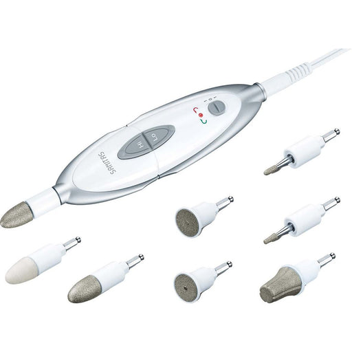 SanitasManiküre-/Pediküre-Set, inkl. 7 Aufsätze, 2 Geschwindigkeitsstufen, Drehzahl: 3.800-4600 U/min ± 14%, Rechts- /Linkslauf, Netzbetrieb, Aufbewahrung...
