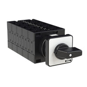 Stufenschalter, Sortiment: Steuerschalter, Normen und Bestimmungen: IEC/EN 60947, VDE 0660, IEC/EN 60204, CSA, UL, Lasttrennschalter nach IEC/EN 60947-3, Typkenner: T3, mit schwarzem Knebel und Frontschild, Kontakte: 18, Schutzart: Front IP65, Bauform: Einbau, Schaltwinkel: 45 °, Schaltverhalten: rastend, ohne 0-Stellung, 9 Baueinheit(en), Bemessungsdauerstrom: Iu= 32 A, Frontschild: 1-6