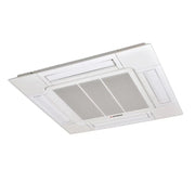 Ein leise laufender, schwingungsgedämpft gelagerter, 4-stufiger DC-Radialventilator mit Überhitzungsschutz saugt die Raumluft über die integrierte, regenerierbare Filtereinheit im Ansaugpaneel an. Der 4-Wege-Luftaustritt der konditionierten Luft erfolgt über individuell einstellbare Luftleitlamellen mit motorgetriebener Deflektorautomatik. Die konditionierte Luft verteilt sich in einem Winkel von 360° um das Gerät und sorgt somit für eine optimale Luftverteilung im Raum. Der Ausblaswinkel der 4 Luftleitlamellen kann individuell und unabhängig voneinander mit einer Kabelfernbedienung eingestellt und bei Bedarf in den gewünschten Positionen fixiert werden. Das Gerät verfügt über eine Autoswing-Funktion und eine definierte Fixierung des Louvers.