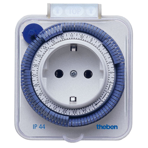ThebenKompakte Steckdosenschaltuhr, mit Spritzwasserschutz (IP 54), Tageszeitprogramm durch 96 Segmente im Abstand von 15 Min. programmierbar, Handschalt...
