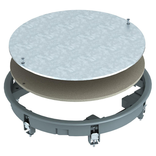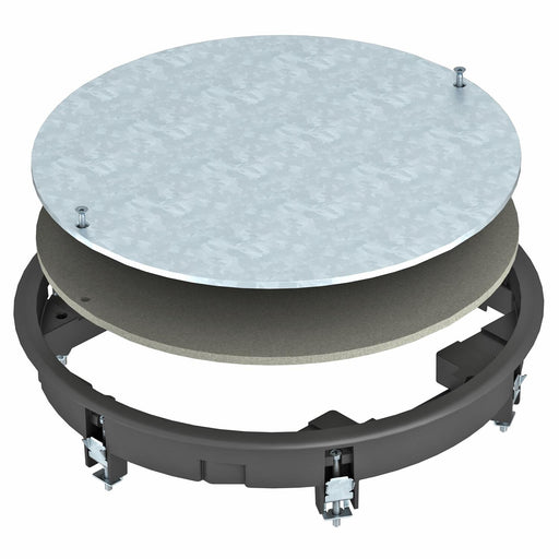 Zugdoseneinsatz zum Blindverschluss einer runden Montageöffnung der Nenngröße R4, Einsatz in Kanalsystemen und Systemböden im Innenbereich. Technis...
