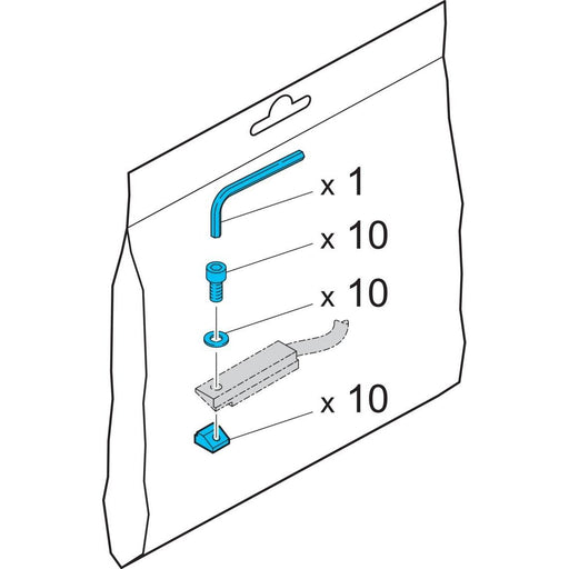 Ersatzteilset Geeignet für: Zylindersensoren MZEK Lieferumfang: 1 x Innensechskantschlüssel, 10 x Innensechskantschrauben, 10 x Unterlegscheiben, 1...