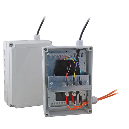 Vollständige Details anzeigenIP66 Kunststoffgehäuse RAL7035Für Wandmontage geeignetLieferumfang:Basismodulplatte zur Befestigung von 3 Spleißkassetten oder2 Spleißkassetten (53...