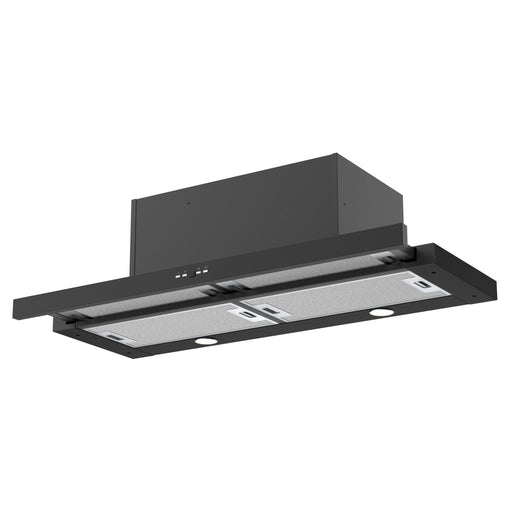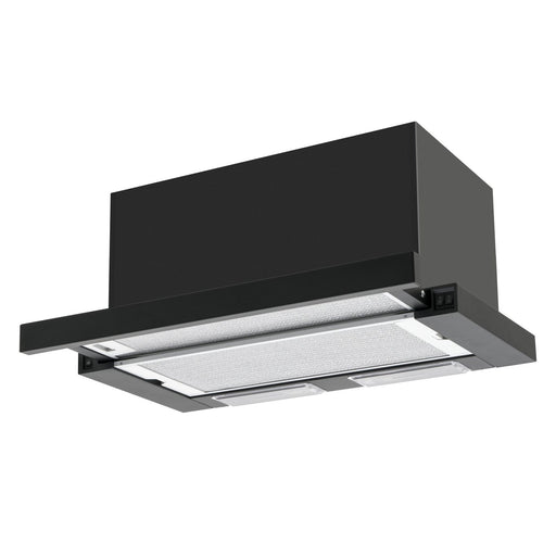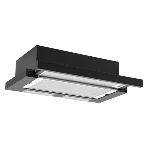 AmicaTeleskophaube - Schwarz - Schieberegler - Lichtwärme 3000 K - Abluft-/Umluftbetrieb - 3 Leistungsstufen 240-410 m³/h - Beleuchtung: LED (E14) 2 x 3...