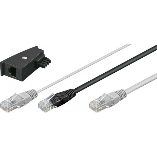 GoobayTAE Adapter 2x RJ45-Stecker > RJ45-Stecker (8P8C) , TAE-F-Stecker, 2x RJ45-Stecker, Schwarz-Grau, Anschlusskabelset speziell für DSL-Router, Y-K...
