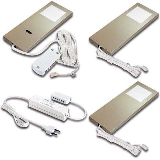 HeraLED-Unterbauleuchte mit homogenem Flächenlicht als 3er Set, Gehäuse edelstahl, Anschlussleitung 2,5m mit LED 24-Stecker, Lichtfarbe neutral weiß ca...