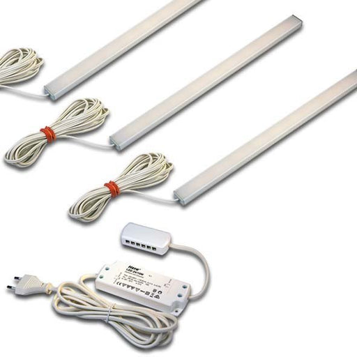 HeraLängliche, flache LED-Unterbauleuchte als 3er Set, Gehäuse Alu, Anschlussleitung 2,5m mit LED 24-Stecker, Lichtfarbe warm weiß ca.3000K, inkl. stec...