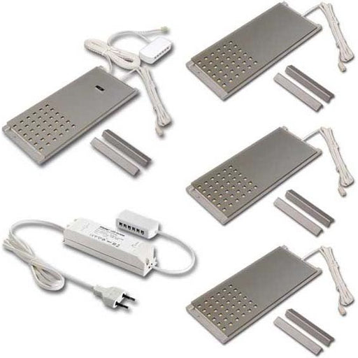 HeraQuadratische, flache LED-Unterbauleuchte als 4er Set, Gehäuse Alu, Anschlussleitung 2,5m mit LED 24-Stecker, incl. steckerfertigem 30W Trafo, Licht...