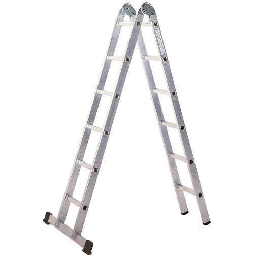 ILLER-LEITERKlappleiter aus Aluminium in Industriequalität, 2 x 6 Sprossen, als Anlegeleiter Länge 3,61 m, einsetzbar als Stehleiter und Anlegeleiter, Traverse...