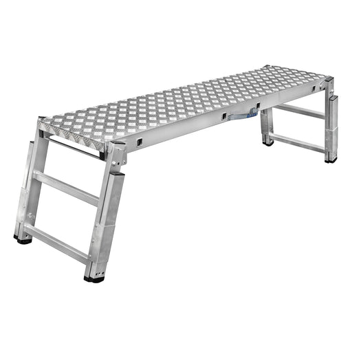 ILLER-LEITERMontagebank aus Aluminium, höhenverstellbar, Größe 180 x 40 cm, ideal für frei stehende Arbeiten bis zu einer Arbeitshöhe von 3,00 m, vier Holme in...