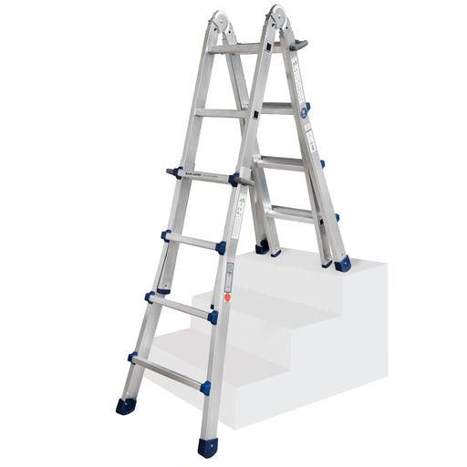 ILLER-LEITERTreppenhausleiter Multilift mit 2 x 5 Sprossen, speziell für Arbeiten in Treppenhäusern und auf extrem unebenem Untergrund, serienmäßige Werkzeugab...