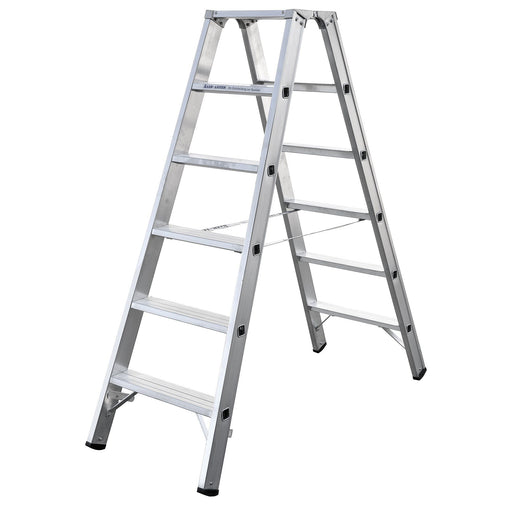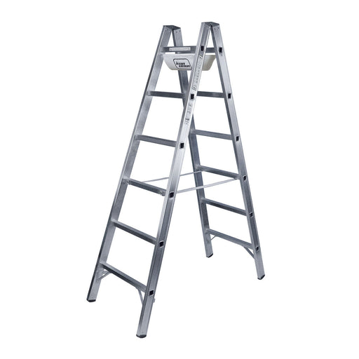 ILLER-LEITERSprossenstehleiter in Industriequalität mit 2 x 6 Sprossen und hochwertiger Ausstattung, Aluminium Druckgussgelenke, serienmäßige Werkzeugablage, r...
