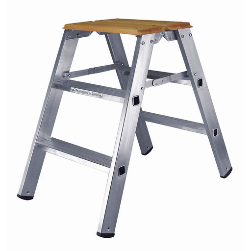 ILLER-LEITERAluminium Montagebock mit 2 x 2 Stufen, Standhöhe ca. 45 cm, extra breite (61 cm) Ausführung, 80 mm tiefe Stufen für bequemen Stand, rutschsicher p...