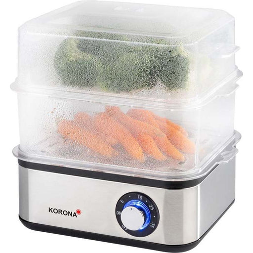 KoronaDampfgarfunktion, 2 abnehmbare Eiereinsätze, einstellbarer Härtegrad, Messbecher mit Eierstecher, Überhitzungsschutz, Ein-Aus-Schalter mit Kontroll...