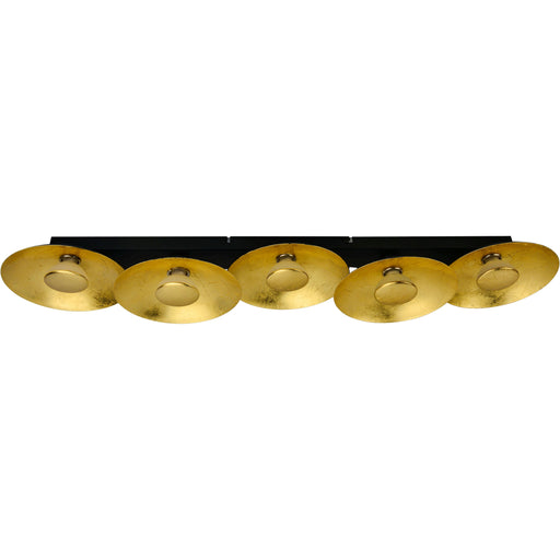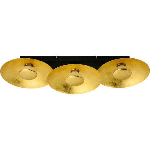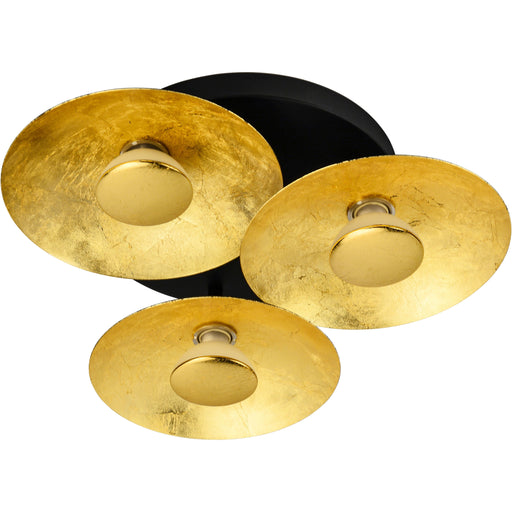LIGHTMEModerne LED-Deckenleuchte aus Metall mit blattgoldener Farbe auf der Vorderseite. Die Leuchtmittel sind in drei Stufen mit jedem Lichtschalter dimm...
