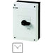 Umschalter, Sortiment: Steuerschalter, Typkenner: T5B, mit schwarzem Knebel und Frontschild, Kontakte: 4, Schutzart: IP65, Bauform: Oberflächenmontage, Schaltwinkel: 90 °, Schaltverhalten: rastend, ohne 0-Stellung, Frontschild: 1-2, Bemessungsbetriebsleistung AC-23A, 50 - 60 Hz 400 V: P = 30 kW, Bemessungsdauerstrom: Iu = 63 A, 2 Baueinheit(en), Normen und Bestimmungen: IEC/EN 60947, VDE 0660, IEC/EN 60204, CSA, UL, Lasttrennschalter nach IEC/EN 60947-3