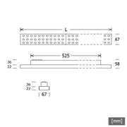 Abmessungen (LxBxH): 867 x 67 x 58 mm