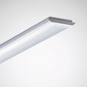 LED-Anbauleuchten für Decken- und Wandmontage. Mit integriertem LiveLink WiFi Steuergerät für tageslichtabhängige Regelung und Anwesenheitserfassung sowie WLAN-Modul für eine sichere Inbetriebnahme und Bedienung (WPA2 Verschlüsselung). Vordefinierte Raumkonfigurationen (Use Cases) mit allen planungsrelevanten Daten ermöglichen eine einfache und schnelle Inbetriebnahme. Ansteuerung von bis zu 64 DALI Teilnehmern. Die Inbetriebnahme erfolgt mit Hilfe der Inbetriebnahme App LiveLink Install für Tablet-PCs. Mit begrenzter Oberflächentemperatur, für den Einsatz in feuergefährdeten Räumen gemäß DIN EN 60598-2-24 geeignet. In Verbindung mit Einbauzubehör auch für gesägte Deckenausschnitte geeignet. Abgehängte Montage über optionales Zubehör möglich. Abdeckwanne aus transluzentem PMMA mit innen liegender Rillenprismenstruktur und hohem Transmissionsgrad über 80 %. Mit symmetrisch eng strahlender Lichtstärkeverteilung. Leuchtenlichtstrom und Lichtfarbe fest eingestellt. Bemessungslichtstrom 3700 lm, Bemessungsleistung 28 W, maximale Leuchten-Lichtausbeute 132 lm/W. Lichtfarbe neutralweiß, ähnlichste Farbtemperatur (CCT) 4000 K, allgemeiner Farbwiedergabeindex (CRI) Ra > 80. Farborttoleranz (initial MacAdam) = 3 SDCM. Die Lichtquelle ist entsprechend der Ökodesign-Anforderungen (VO (EU) 2019/2020) austauschbar. Leuchtenkörper aus Stahlblech. Oberfläche silbergrau beschichtet (ähnlich RAL 9006). Stahlblech, konturenkonform an konvexe Wannenform angepasst, mit integriertem Leitungskanal für Netzzu- und -weiterleitung. Maße (L x B): 1494 mm x 212 mm, Leuchtenhöhe 70 mm. Kunststoff-Kopfstücke farblich auf Leuchtenkörper abgestimmt. Zulässige Umgebungstemperatur (ta): -20 °C - +25 °C. Schutzklasse (EN 61140): I, Schutzart (DIN EN 60529): IP50, Stoßfestigkeitsgrad nach IEC 62262: IK03, Prüftemperatur Glühdrahttest gemäß IEC 60695-2-11: 650 °C. Gewicht: 5,7 kg. Mit elektronischem Betriebsgerät, digital dimmbar (DALI). Betriebsgerät gemäß DALI-2-Standard (EN 62386). Leuchte mittels Tastfunktion über DALI-Steuerklemmen schalt- und dimmbar (Touch DIM). Das Betriebsgerät ist entsprechend der Ökodesign-Anforderungen (VO (EU) 2019/2020) austauschbar. Die Leuchte ist Monitoring ready (MOR) und liefert Leuchtendaten zur Überwachung oder vorausschauenden Wartung. Sie ist damit kompatibel zu den TRILUX Digital Services (Energy Monitoring und Light Monitoring). Das Produkt erfüllt die grundlegenden Anforderungen der anwendbaren EU-Richtlinien und des Produktsicherheitsgesetzes und trägt die CE-Kennzeichnung. Zusätzlich ist die Leuchte durch eine unabhängige Prüfstelle ENEC-zertifiziert. Leuchte 10 Jahre, Ersatzteile (LED-Modul, Betriebsgerät, optisches System) 15 Jahre nach Rechnungsdatum unter Vorbehalt vertretbarer Änderungen, die dem Fortschritt dienen, verfügbar.