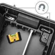 00 21 33 E Werkzeugkoffer Robust26 Move Elektro Bestückt mit 16 KNIPEX-Werkzeugen, insgesamt 22 Markenwerkzeugen, teilweise VDE-geprüft nach DIN EN 60900. Insgesamt 80 Steckmöglichkeiten. Max. Zuladung: 25 kg. 26,4 Liter Fassungsvermögen. Flugtauglicher Koffer aus schlagfestem Polypropylen. Staub- und wasserdicht. Automatisches Druckausgleichventil. Temperaturstabil von -30C bis +80C. Vorrichtung für Vorhängeschloss. Dokumentenfach. Werkzeugtafeln aus schmutzabweisenden PP-Hohlkammerplatten mit bestückbaren Werkzeugtaschen und -schlaufen. Verschließbare Bodenschale individuell unterteilbar durch Aluminium-Trennstegesystem. Ergonomischer Zweikomponenten-Griff. Bereit, wenn du es bist: Für härteste Einsatzbedingungen schlagfestes Polypropylen, Staub-, wasserdicht und temperaturbeständig. Harte Arbeit wird smarte Arbeit: Maximale Flexibilität dank 19 Werkzeugtaschen und 61 Halteschlaufen sowie anpassbarem Aluminium-Trennstegesystem. Bringt dein Know-how bequem ans Ziel: Flugtauglich, mit ausfahrbarem, ergonomischen Haltegriff und leichtlaufenden Rollen für mehr Komfort. - Abmessung Breite außen (innen): 350mm - Abmessung Höhe außen (innen): 225mm - Abmessung Tiefe außen (innen): 550mm Lieferumfang: 1 x 00 11 01 Knipex TwinKey der Standard Schaltschrankschlüssel (92 mm), 1 x 98 52 KNIPEX Kabelmesser (190 mm), 1 x 97 53 14 KNIPEX Selbsteinstellende Crimpzange für Aderendhülsen mit Seiteneinführung (0,08 16 mm²), 1 x 98 25 01 SL KNIPEX Schraubendreher (Slim) für Kreuzschlitzschrauben Pozidriv (PZ1 x 80 mm), 1 x 98 25 02 SL KNIPEX Schraubendreher (Slim) für Kreuzschlitzschrauben Pozidriv (PZ2 x 100 mm), 1 x 98 20 35 SL KNIPEX Schraubendreher (Slim) für Schlitzschrauben (0,6 x 3,5 x 100 mm), 1 x 98 20 55 SL KNIPEX Schraubendreher (Slim) für Schlitzschrauben (1,0 x 5,5 x 125 mm), 1 x 13 86 200 KNIPEX Elektro-Installationszange (Ø 15 mm / 50 mm²), 1 x 16 95 01 SB KNIPEX ErgoStrip Universal-Abmantelungswerkzeug für Rechtshänder (Ø 8,0 13,0 mm), 1 x 70 06 160 Knipex Seitenschneider (160 mm), 1 x 98 25 01 SLS Knipex Schraubendreher (Slim) PlusMinus Pozidriv (PZ/S1 x 80 mm), 1 x 26 26 200 Knipex Flachrundzange mit Schneide (Storchschnabelzange) (200 mm), 1 x 0022086 Wera Sechskantschlüsselsatz (1,5 - 10 mm), 1 x 101-0300 Picard Schlosserhammer (300 g), 1 x 18115 Stabila Mini-Wasserwaage Pocket Electric (68 mm), 1 x 2281 Stabila Wasserwaage Typ 70 (30 cm), 1 x 01114 Stabila Holzgliedermaßstab Typ 1607 weiss (2.000 mm), 1 x 78 06 125 KNIPEX Electronic Super Knips VDE (125 mm), 1 x 78 06 125 KNIPEX Electronic Super Knips VDE (125 mm), 1 x 12 52 195 KNIPEX PreciStrip16 Automatische Abisolierzange (0,08 - 16 mm²), 1 x 90 22 10 BK KNIPEX BiX Schneider für Kunststoffrohre und Dichthülsen (72 mm), 1 x 08 26 185 KNIPEX Spitz-Kombizange (185 mm),.