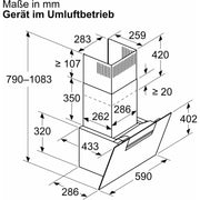 Design: Schräg-Essen-Design Wandmontage Glasscheibe: schwarz bedruckt Wahlweise Abluft- oder Umluftbetrieb Bei Umluft kaminloser Betrieb möglich Für den Umluftbetrieb wird das Clean Air Plus Umluftset (Zubehör) benötigt. Wichtigste Eigenschaften: Efficient Drive Motortechnologie - leiser und energieeffizienter Motor Beleuchtung: 2 Stck, LED, 3 W, mit Farbtemperatur einstellbar Softlight: die Beleuchtung schaltet sich sanft ein und aus. Dimm-Funktion: die Helligkeit der Beleuchtung kann eingestellt werden. Farbtemperatur: 3500 K Beleuchtungsstärke: 502 lux Dunstabzug an Vorder- und Unterseite 2 Metallfettfilter Komfortfunktionen: Touch Control 3 Leistungsstufen und 1 Intensivstufe Automatisches Zurücksetzen von Intensiv- auf Normalstufe nach 6 Min. Automatischer Gebläsenachlauf mit digitaler Anzeige Digitale Funktionen: Home Connect: Bedienung, Überprüfung und Einstellung Ihrer Haube über Smartphone oder Tablet (nur in Ländern, in denen der Home Connect-Service verfügbar ist) Die Kochfeldbasierte Haubensteuerung aktiviert die Dunstabzugshaube automatisch beim Kochen, dank der WiFi-Verbindung von Dunstabzugshaube und einem geeignetem Kochfeld. Kochfeld-Haube-Verbindung: Die Dunstabzugshaube passt die Lüftergeschwindigkeit automatisch an, da das Kochfeld kontinuierlich Kochdaten liefert (mit passendem Kochfeld und verbundenem Home Connect Zugang) Vollautomatischer Dunstabzug Sprachsteuerung über gängige Sprachassistenten möglich Leistungsprofile: Wählen Sie in der Home Connect App zwischen Standard, Leistung oder Leise, um die Absaugleistung zu erhöhen oder das Lüftergeräusch zu reduzieren. LED-Beleuchtung mit einstellbarer Lichttemperatur: Ermöglicht Ihnen die Anpassung der Lichttemperatur an Ihre persönlichen Bedürfnisse über die Home Connect App Sättigungsanzeige, Einstell- und Rücksetzfunktion für Fettfilter und Geruchsfilter über Home Connect App verfügbar. Nachlauffunktion: verfügbar über Home Connect App Intervallfunktion: verfügbar über Home Connect App Die Home Connect Funktionalität lässt sich durch die Einbindung zahlreicher Anwendungen externer Kooperationspartner (Partnering) beliebig erweitern Aktualisierbares Gerät (verfügbar mit verbundenem Home Connect-Konto): Halten Sie das Gerät immer auf dem neuesten Stand der Software. Komfort bei der Reinigung: Großer Öffnungswinkel der Glasplatte mit Arretierungsfunktion für eine einfache Filterzugänglichkeit und leichte Reinigung. Die Oberflächen und Materialien sind glatt und leicht zu reinigen. Metallfettfilter, spülmaschinengeeignet Leistung Abluft: Gemäß EN 61591 und EN/IEC 60704-2-13 kann Ihr Gerät im Abluftbetrieb folgende Werte erreichen: Leistungsstufe 1: Lüfterleistung:223 m3/h