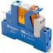 Koppelrelais mit blauer Fassung, Kontakt 16 A, Kontaktmaterial AgNi, Umgebungstemperatur: -40 bis + 70° C. Wenn die Umgebungstemperatur über 50° C beträgt, darf maximal 12 A AC1 geschaltet werden. Ausführung: mit EMV-Entstörung und grüner LED. Dieses Koppelrelais ist modular aufgebaut.