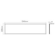 LED Deckeneinbau- und Aufbaulösung für hohe Anforderungen im gewerblichen Bereich. Rahmen aus Aluminium. Diffusorscheibe und Lightguide aus PMMA (vergilbungsfrei). Abmessungen (LxBxH): 1245x308x10 mm. Farbwiedergabeindex Ra: 80. Farbabstand (MacAdam): 3 SDCM. Lebensdauer: 50.000 h (L80 B10). Betriebsgerät inklusive: dimmbar 1-10V. Dali und nicht dimmbares Betriebsgerät auf Anfrage.